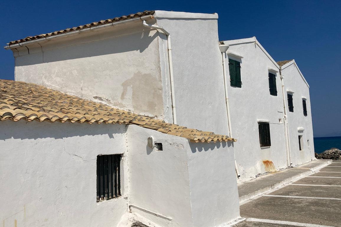 Die kleine Insel Vlahérna, durch einen kurzen künstlichen Damm mit der Halbinsel Kanóni verbunden, wird nahezu vollständig von einem charmanten Kloster aus dem 18. Jahrhundert eingenommen. Obwohl heute unbewohnt, beeindruckt der Konvent mit seiner malerischen Architektur. Teile des Gebäudes dienen mittlerweile als Souvenirgeschäft und laden zum Stöbern ein. Die Insel liegt direkt gegenüber des Flughafens Kerkyra – man hört und sieht vom Ufer aus permanent die Flugzeuge starten und landen.